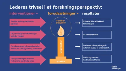 - Det er relevant at kende denne forskningsmæssige viden om lederes trivsel, når den enkelte organisation vil sætter interventioner i gang for et bedre psykisk arbejdsmiljø for ledere. Ellers risikerer man at intervenere i blinde og ikke opnå de ønskede resultater. Ledere har på linje med alle andre medarbejdere ret til et sundt og sikkert arbejdsliv.
