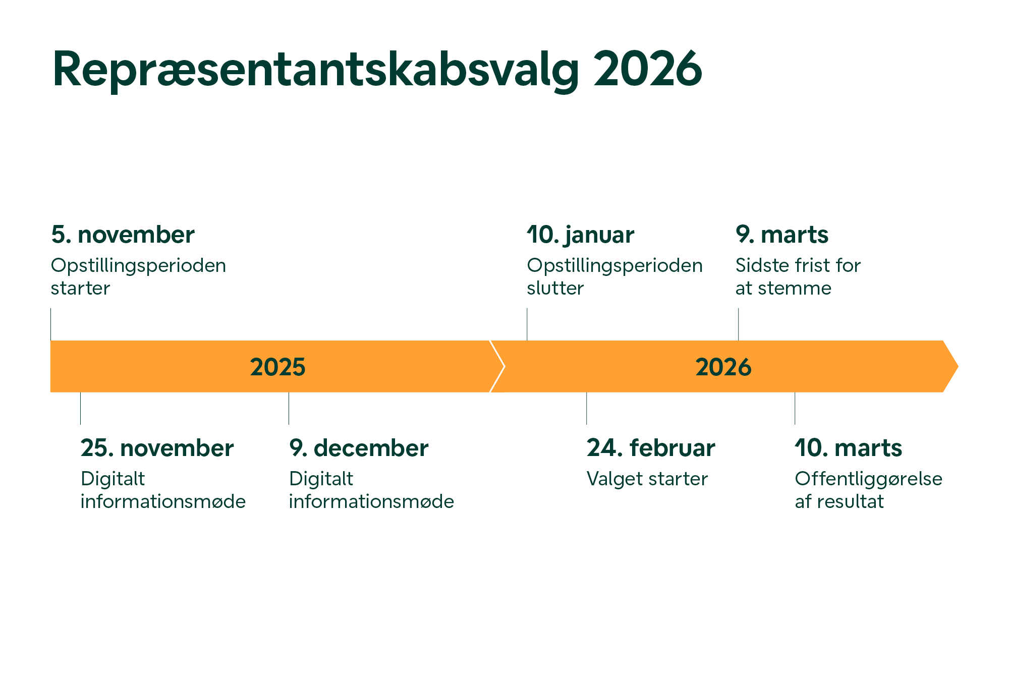 Når opstillingsfristen er udløbet, vurderer valgbestyrelsen, om du opfylder alle krav til opstilling og stillere. Herefter orienterer vi dig, og listen med alle kandidater til repræsentantskabsvalget offentliggøres.