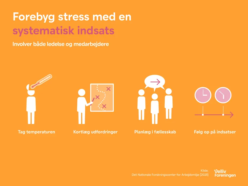 - Udarbejde en politik for, hvordan i forebygger stress og håndtere hvis en medarbejder bliver syg med stress